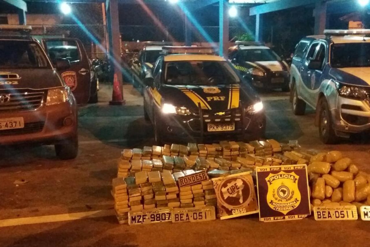 Suspeitos são perseguidos e presos com meia tonelada de maconha