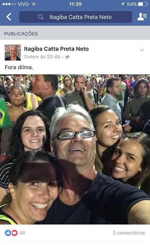 O juiz responsável pela suspensão da posse do ex-presidente Luiz Inácio Lula da Silva na Casa Civil nesta quinta-feira (17), Itagiba Catta Preta Neto, participou da manifestações contrárias à presidente Dilma Rousseff. O blogueiro Lauro Jardim, de O Globo, publicou a imagem em que o magistrado da 4ª Vara Federal do Distrito Federal está nas ruas contra a petista.
