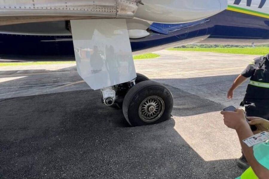 Foto: Reprodução/Redes sociaisUm avião da Azul atolou ao tentar decolar do aeroporto de Fernando de...