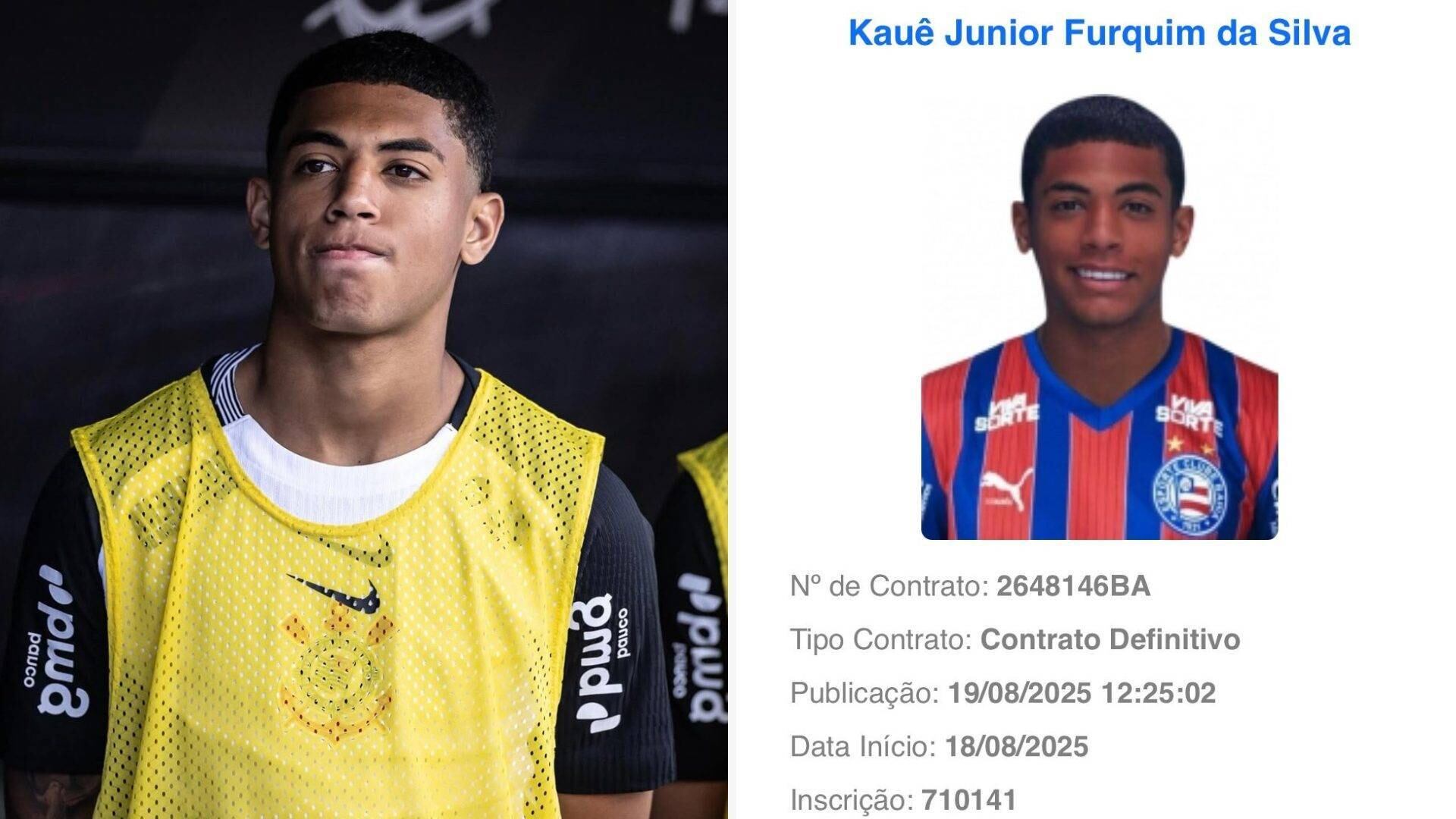 Reprodução / Redes SociaisO Bahia anunciou, na tarde desta terça-feira (19), a contratação de Kauê Furquim, atleta que foi motivo de polêmica entre o clube e o Corinthians. O Bahia pagou a multa rescisória, que era de 14 milhões de reais, e contratou o jogador, considerado uma das maiores promessas da base alvinegra.