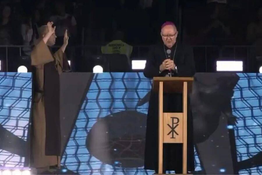Foto: Reprodução Redes Sociais.Um evento católico realizado no último sábado, em Brasília, ganhou destaque por misturar devoção e política. O Desperta Brasil reuniu cerca de 80 mil pessoas no Estádio Mané Garrincha e, em um dos momentos, o bispo Dom Adair José Guimarães pediu a intercessão de Nossa Senhora Aparecida para afastar o comunismo do país.