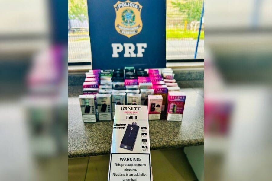 Foto: Divulgação/PRF Durante uma fiscalização de combate ao crime na BR-116, em Jequié, a Polícia Rodoviária Federal (PRF) apreendeu 55 cigarros eletrônicos transportados irregularmente. A ação aconteceu na tarde desta terça-feira (15), no km 677 da rodovia.