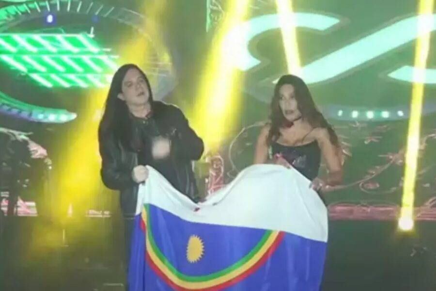 Silvânia Aquino confunde bandeira de Pernambuco com símbolo de time durante show