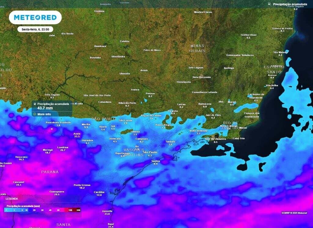 Nesta sexta-feira, 6, o tempo no Brasil será marcado por instabilidades atmosféricas associadas à chegada de uma nova frente fria, que avança do Sul em direção ao Sudeste. A previsão mostra aumento da nebulosidade, chuva e queda de temperatura principalmente nas faixas litorâneas de São Paulo e Rio de Janeiro, além de partes de Minas Gerais e do Sul do país.
