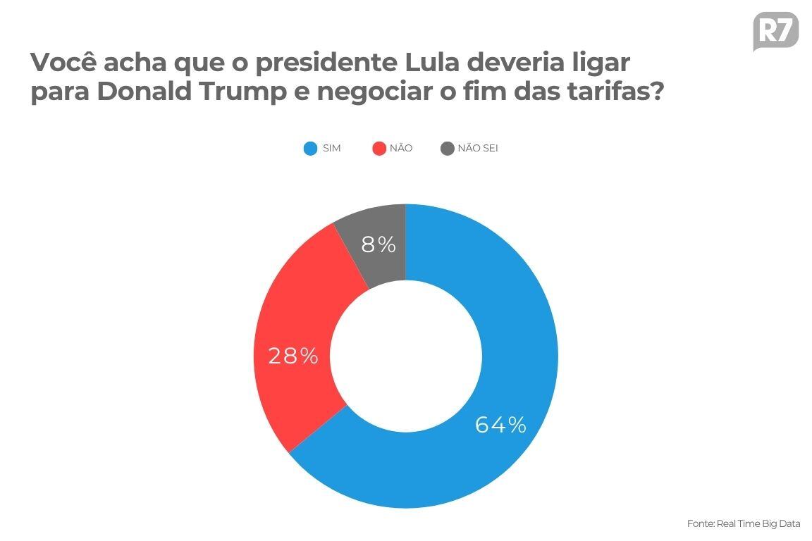 Segundo a pesquisa, 64% dos entrevistados defendem uma iniciativa direta de Lula com o ex-presidente norte-americano. Outros 28% são contrários à ideia, enquanto 8% preferiram não opinar.