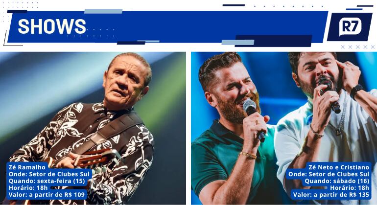 O Distrito Federal está recheado de eventos para este fim de semana. Desta vez, a agenda cultural do R7 traz destaque para os shows que serão na capital federal.