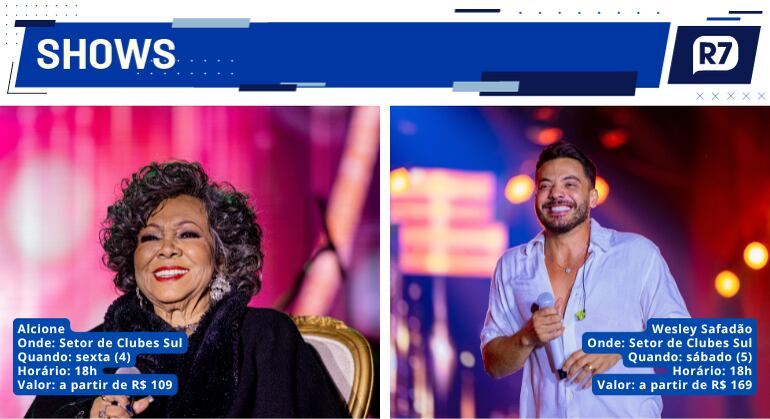 No sábado (5), o forró e o sertanejo dominam o palco com apresentações de Wesley Safadão e Nattanzinho Lima, prometendo uma noite animada para o público brasiliense.