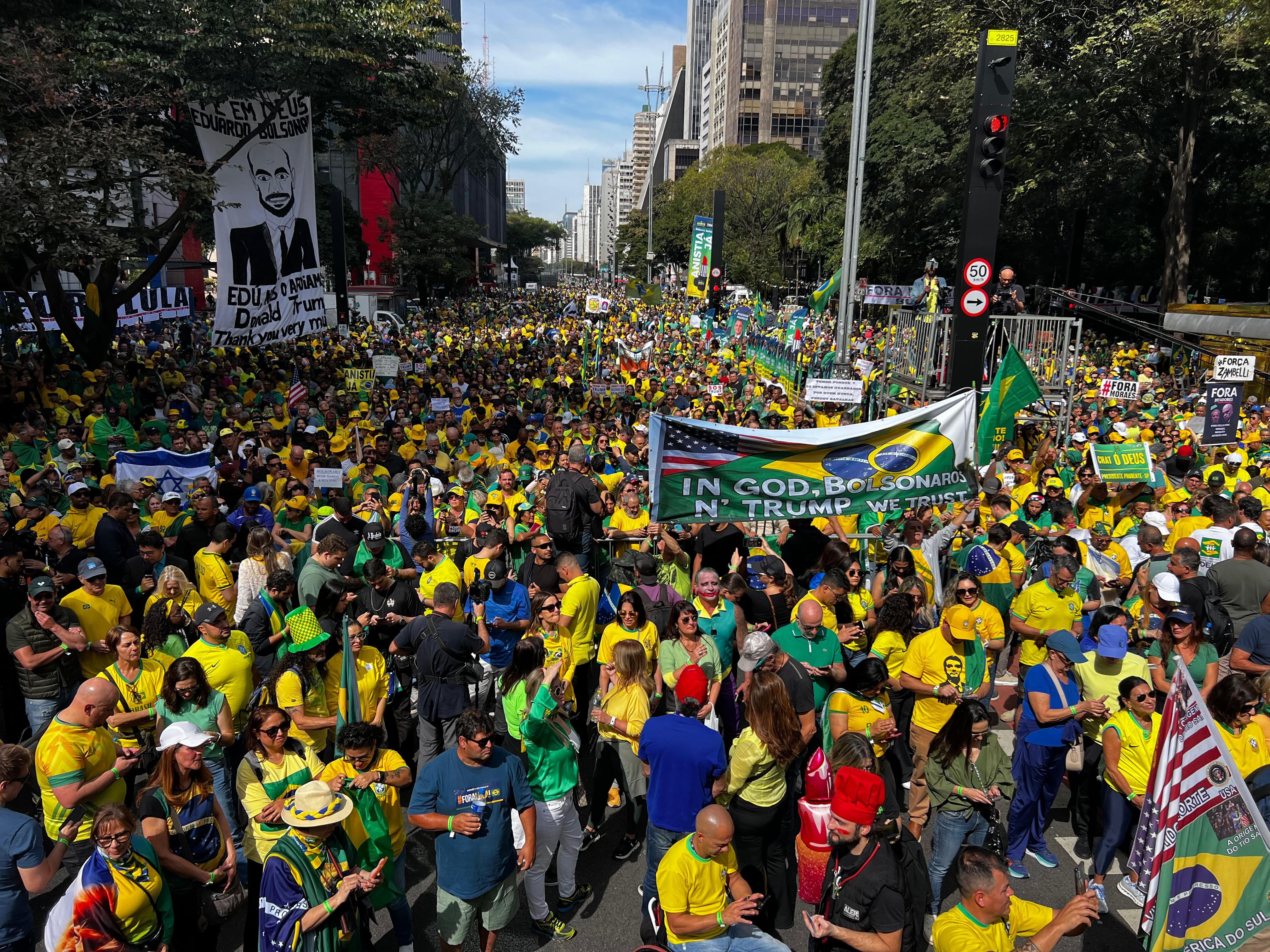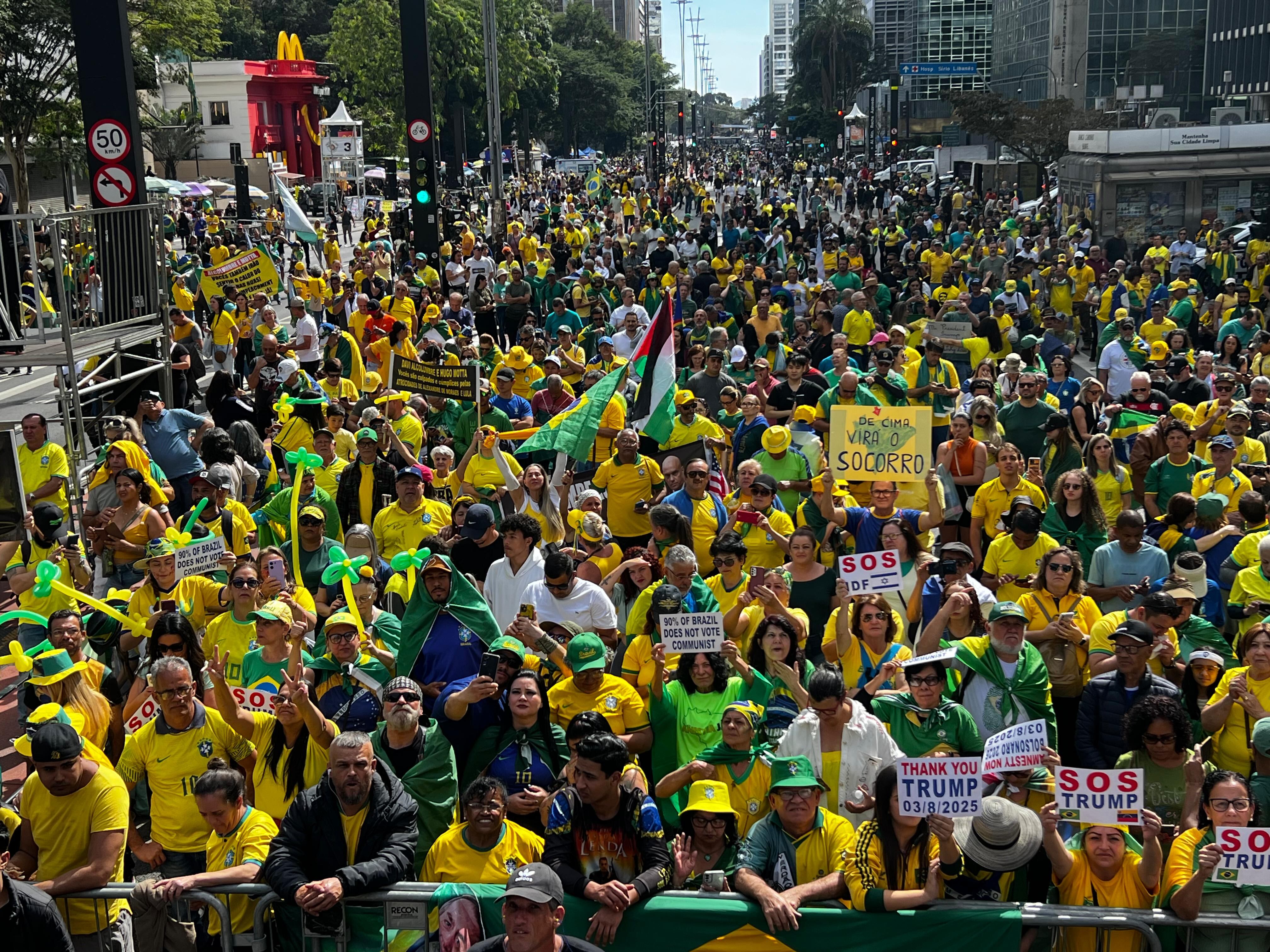 Houve mobilização em ao menos três cidades — Brasília, Rio de Janeiro e São Paulo. Na Avenida Paulista, cartazes expressavam apoio a Trump, com frases de agradecimento e pedidos de socorro.