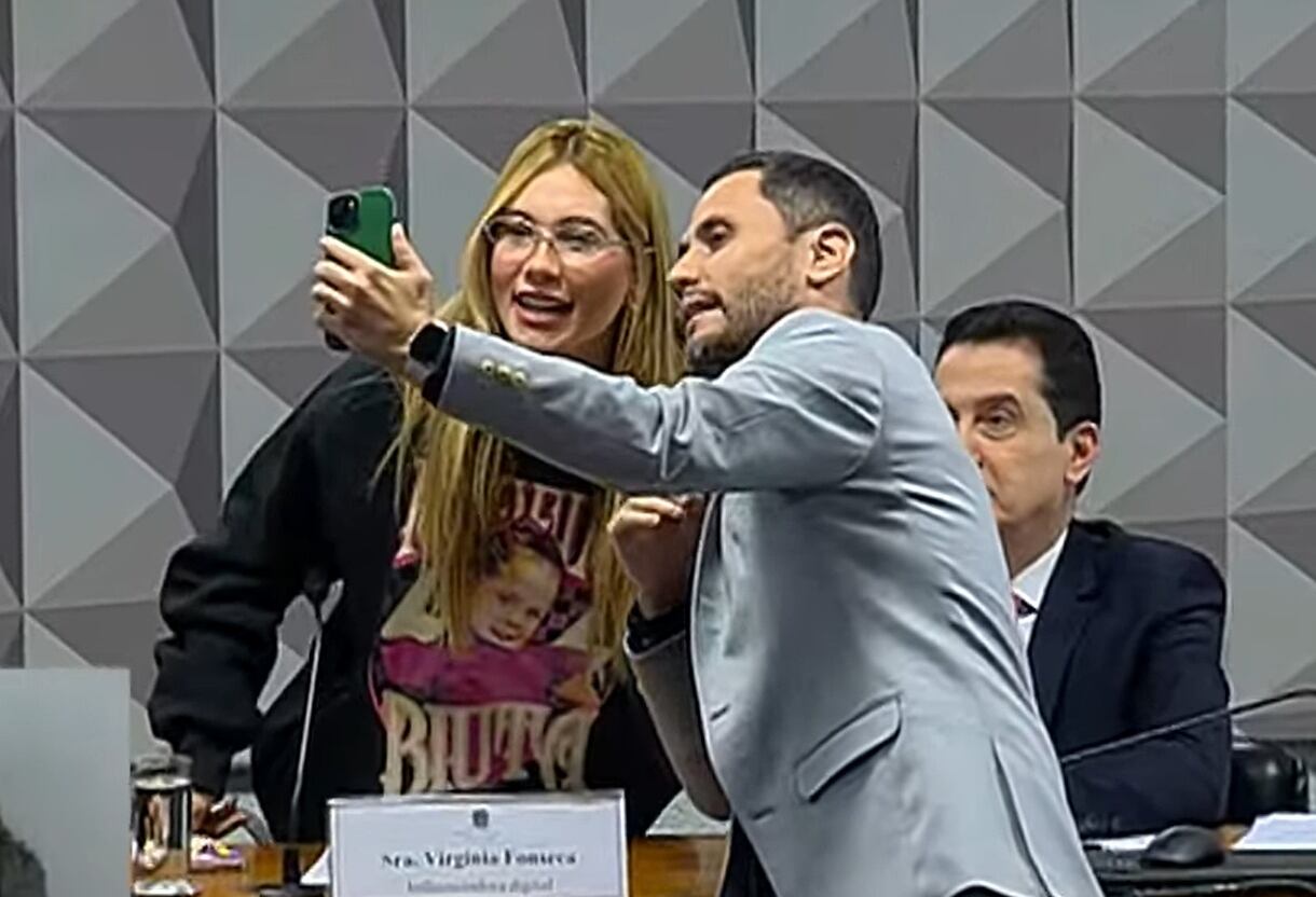 O senador Cleitinho (Republicanos-MG) pediu para fazer um vídeo com a influenciadora digital Virginia Fonseca durante o depoimento dela à CPI (Comissão Parlamentar de Inquérito) das Bets nesta terça-feira (13).