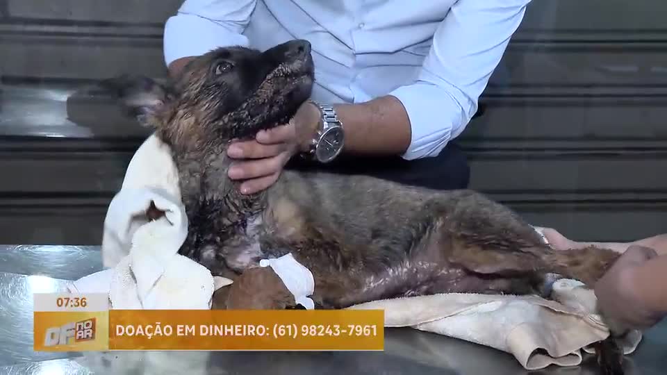 Filhote de cachorro é encontrado preso em concreto Paranoá (DF)