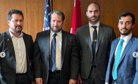 Eduardo se encontrou com Darren Beattie, subsecretário de Estado para a Diplomacia Pública e Assuntos Públicos dos EUA, e Ricardo Pita, assessor sênior para o Hemisfério Ocidental, embora não tenha revelado detalhes sobre as discussões.