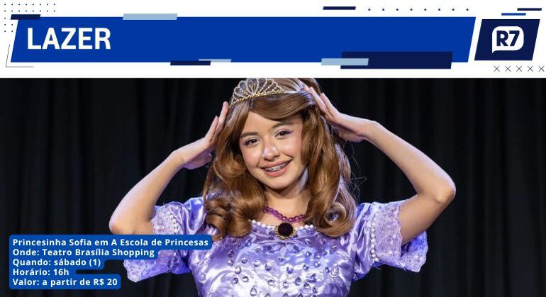O público infantil também pode se divertir neste fim de semana com a peça Princesinha Sofia em A Escola de Princesas. O evento acontece neste sábado (1º) no Teatro Brasília Shopping.