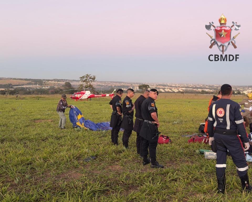 Segundo o CBMDF (Corpo de Bombeiros Militar do Distrito Federal), o piloto do parapente apresentava múltiplas fraturas provocadas pela queda e morreu no local.