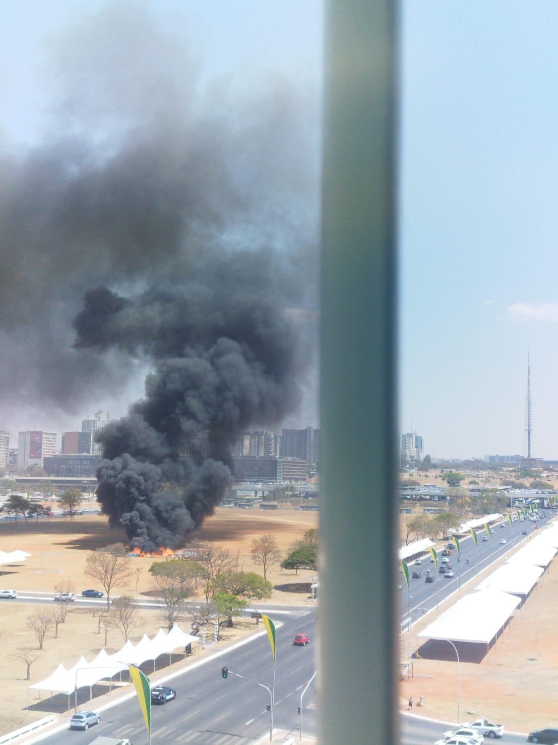A fumaça foi visível à distância, inclusive por pessoas que estavam acompanhando o julgamento do ex-presidente Jair Bolsonaro e outros sete réus no STF (Supremo Tribunal Federal).