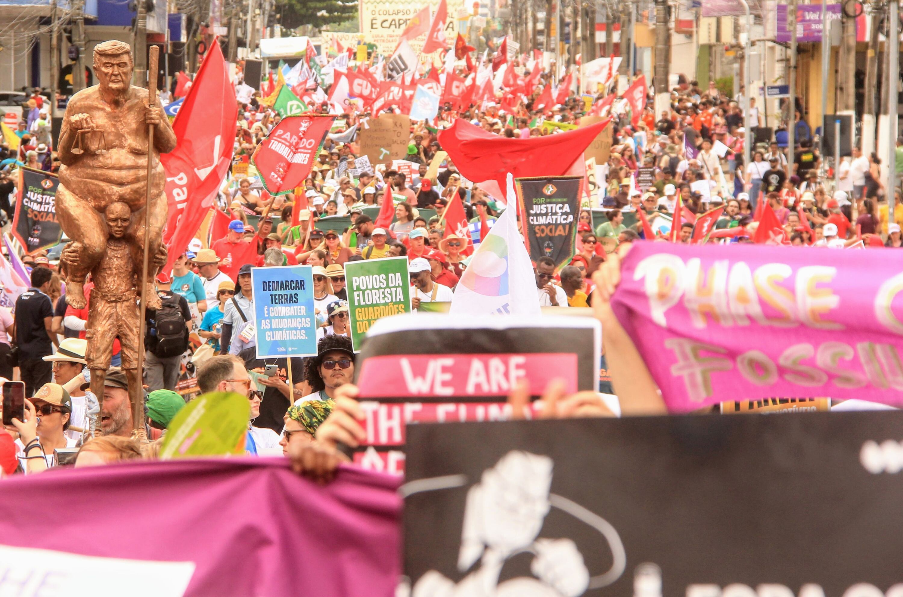 A Marcha pelo Clima ainda demandou mais atenção às comunidades, com cobrança por uma transição que garanta justiça social, espaço para mulheres e alcance de políticas públicas entre cidades.