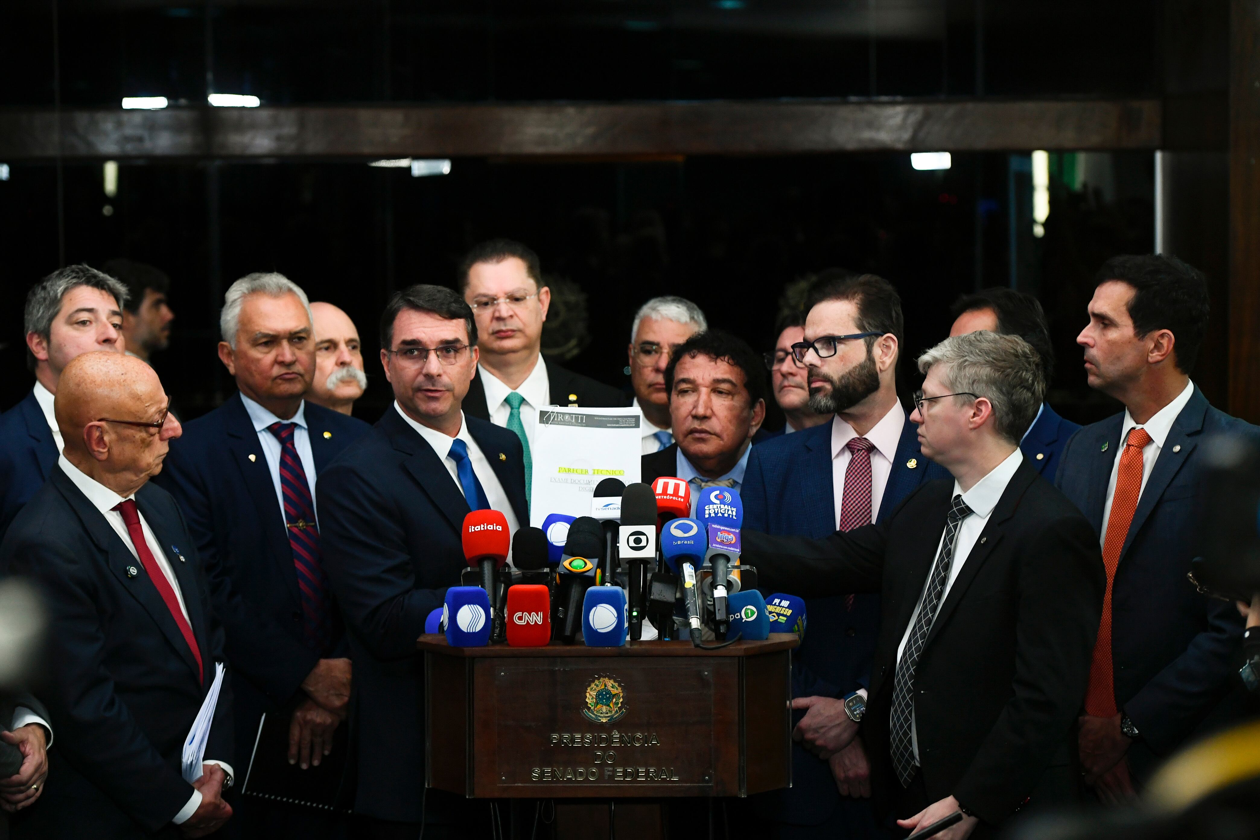 “Vamos oficiar todos os ministros do STF para que tomem ciência dessa grave denúncia de fraude processual, feita por um membro do próprio STF, solicitando que seja aberta uma investigação e que seja suspenso esse julgamento em andamento até que a apuração seja concluída, pelo bem da democracia”, afirmou o senador Flávio Bolsonaro (PL-RJ), filho do ex-presidente.