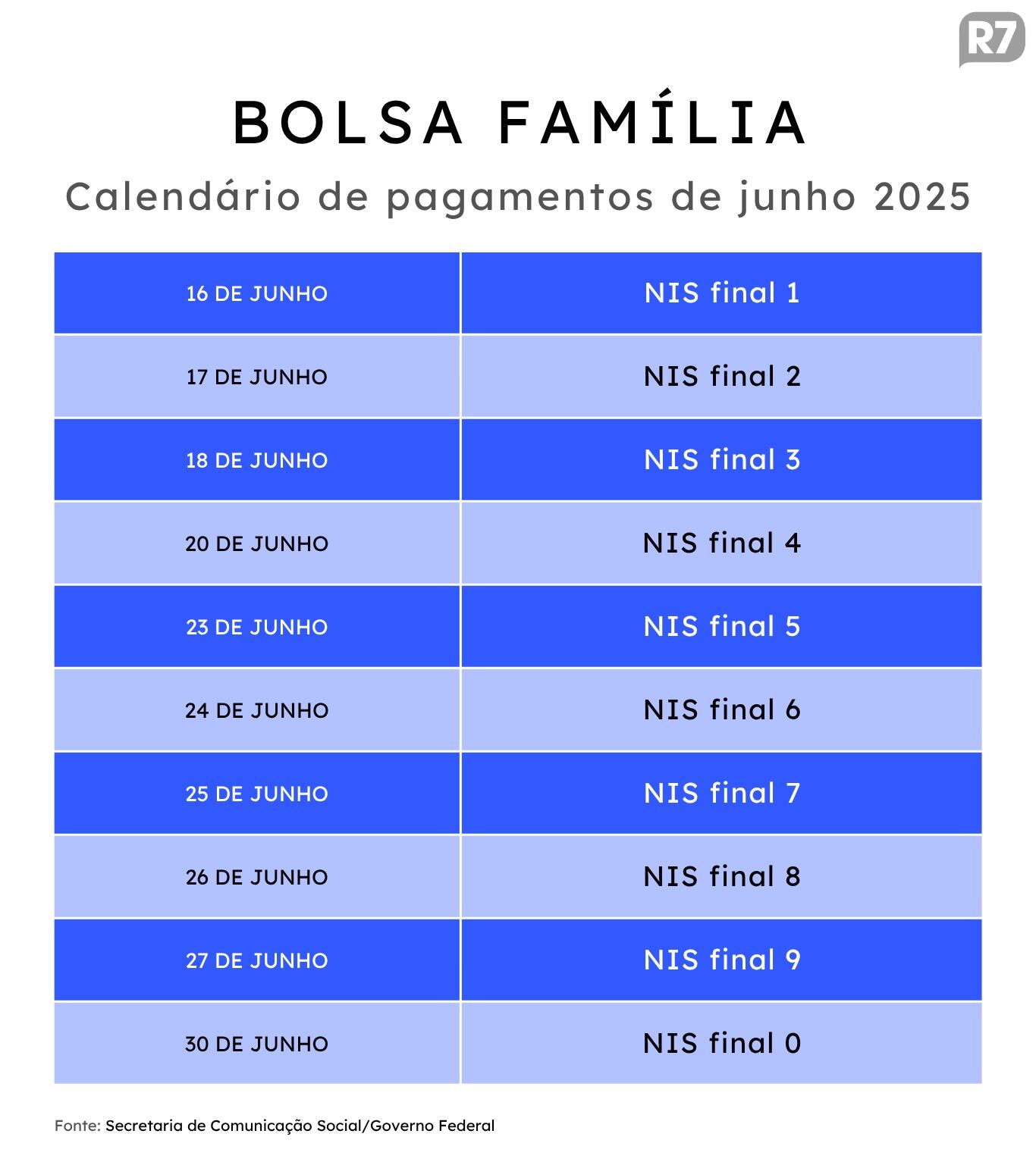 Os pagamentos do Bolsa Família referentes ao mês de junho começam nesta segunda-feira (16) e seguem até o dia 30. Ao todo, mais de 20,49 milhões de famílias devem ser contempladas neste mês.