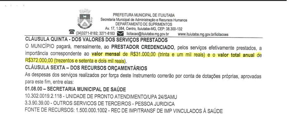 Uma licitação dispensada pela prefeitura contratou serviços médicos complementares do Instituto de Ortopedia e Traumatologia de Ituiutaba, empresa da qual o atual namorado de Leandra Guedes é sócio. O contrato, firmado em 2023, prevê repasses anuais de R$ 372 mil.