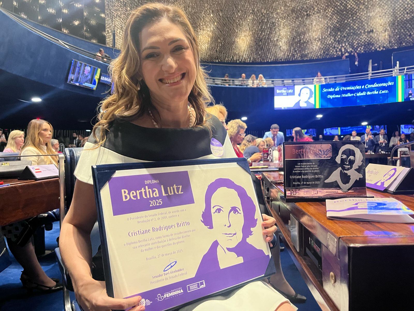 “Ela se destaca na proteção da mulher. Cristiane é uma advogada ativista em defesa da mulher há muitos anos, especialmente na área eleitoral. Ela coordenou o programa Mais Mulheres na Política, foi ministra e hoje está aqui no Senado como assessora jurídica, nos ajudando em todas as pautas femininas. Ela merece muito esse prêmio”, destacou a senadora.