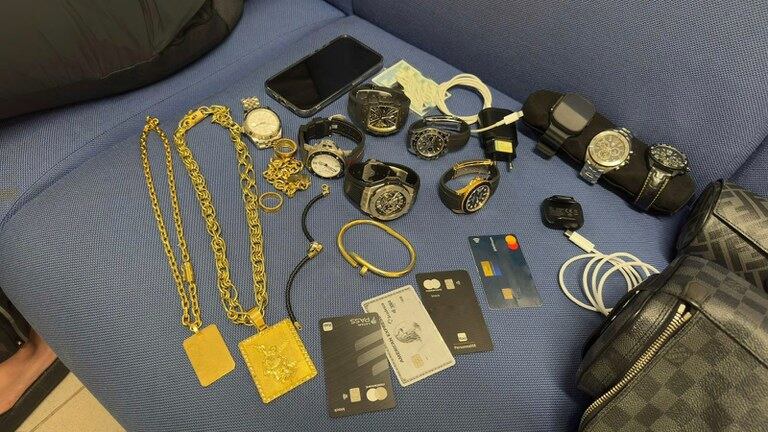 Além da droga, os policiais encontraram bolsas de marcas luxuosas, cartões de crédito, cordões de ouro, anéis, documentos e relógios.