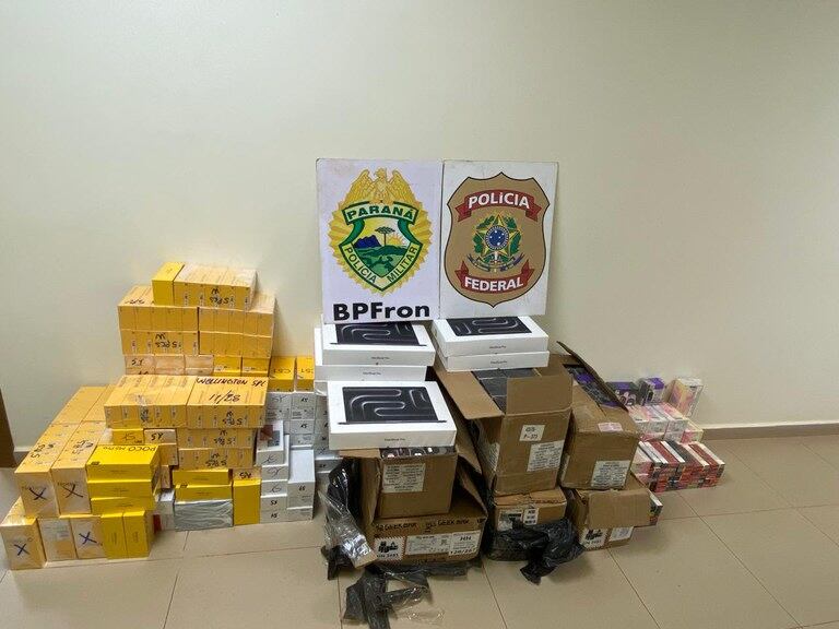 A Polícia Federal localizou, durante uma operação nesta quinta-feira (22), mais de 1.700 produtos contrabandeados do Paraguai no meio de uma mata em Guaíra (PR). O flagrante ocorreu após os policiais visualizarem uma movimentação suspeita em um porto clandestino no Rio Paraná. Entre as mercadorias apreendidas estão cigarros eletrônicos, notebooks e celulares (veja lista completa).