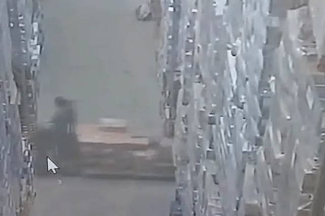 Empilhadeira bate em pilar, derruba estoque ‘como dominó’ e operador fica soterrado; assista