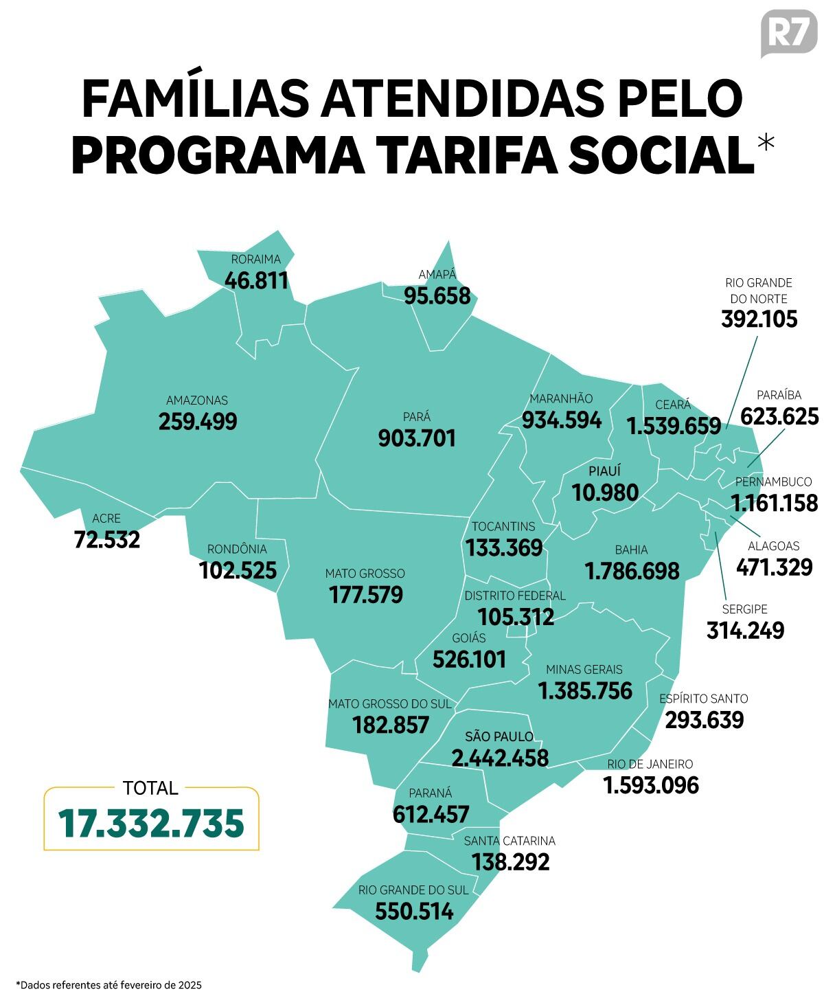 A tarifa atende famílias inscritas no CadÚnico (Cadastro Único) — em que a renda mensal seja menor ou igual a meio salário mínimo —, idosos e pessoas com deficiência que recebam o BPC (Benefício de Prestação Continuada da Assistência Social), além de indígenas e quilombolas, que recebem descontos maiores.