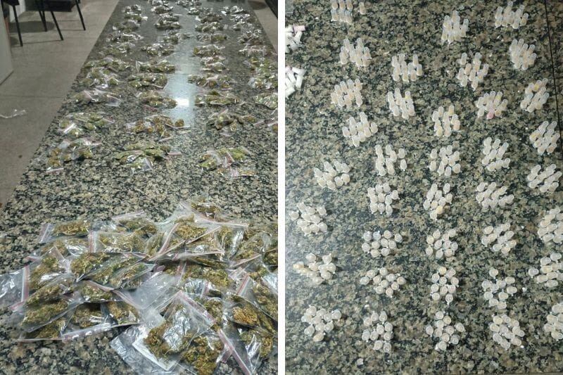 Policiais militares do 22º Batalhão da Polícia Militar apreenderam mais de 1.800 porções de cocaína, haxixe, crack e maconha, na noite de domingo (23), em Cajazeiras.