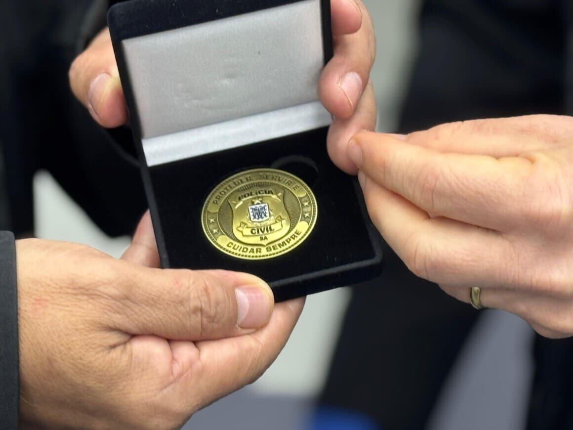 Na manhã desta segunda-feira (14), a Polícia Civil da Bahia, por meio do delegado-geral André Viana, presenteou representantes da Rádio Sociedade da Bahia com a moeda institucional da corporação.