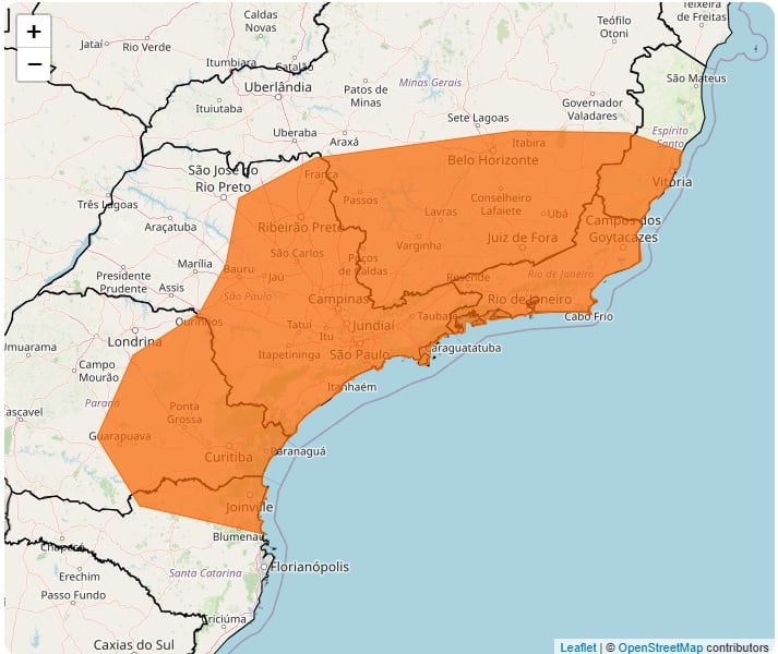 O Inmet (Instituto Nacional de Meteorologia) emitiu um alerta laranja para temporais e rajadas de ventos para os estados de São Paulo, Rio de Janeiro, Minas Gerais, Paraná, Santa Catarina e Espírito Santo.