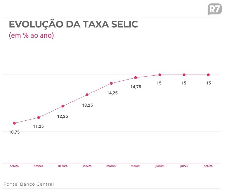 A Selic foi elevada para 15% após uma série de sete aumentos sucessivos, atingindo o nível mais elevado desde 2006.