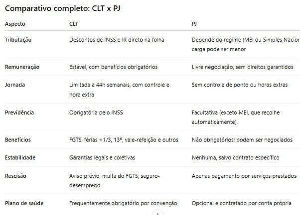 Para quem busca estabilidade, proteção social e benefícios de longo prazo, o regime CLT ainda é o mais indicado. Já para profissionais experientes, com bom controle financeiro e foco em autonomia, o regime PJ pode representar mais liberdade e lucro, desde que os riscos estejam bem dimensionados.