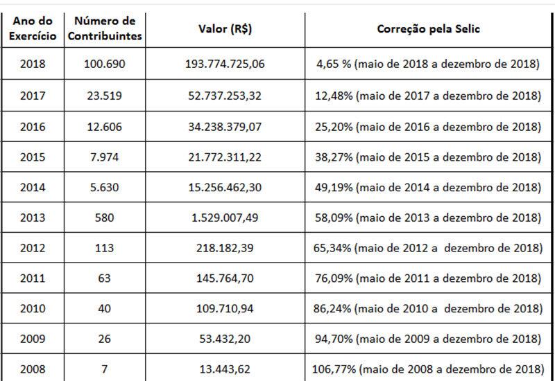 O crédito bancário será disponibilizado para 151.248 contribuintes, totalizando mais de R$ 319 milhões. O lote comtempla os exercícios de 2018, bem como lotes residuais de 2008 a 2017.