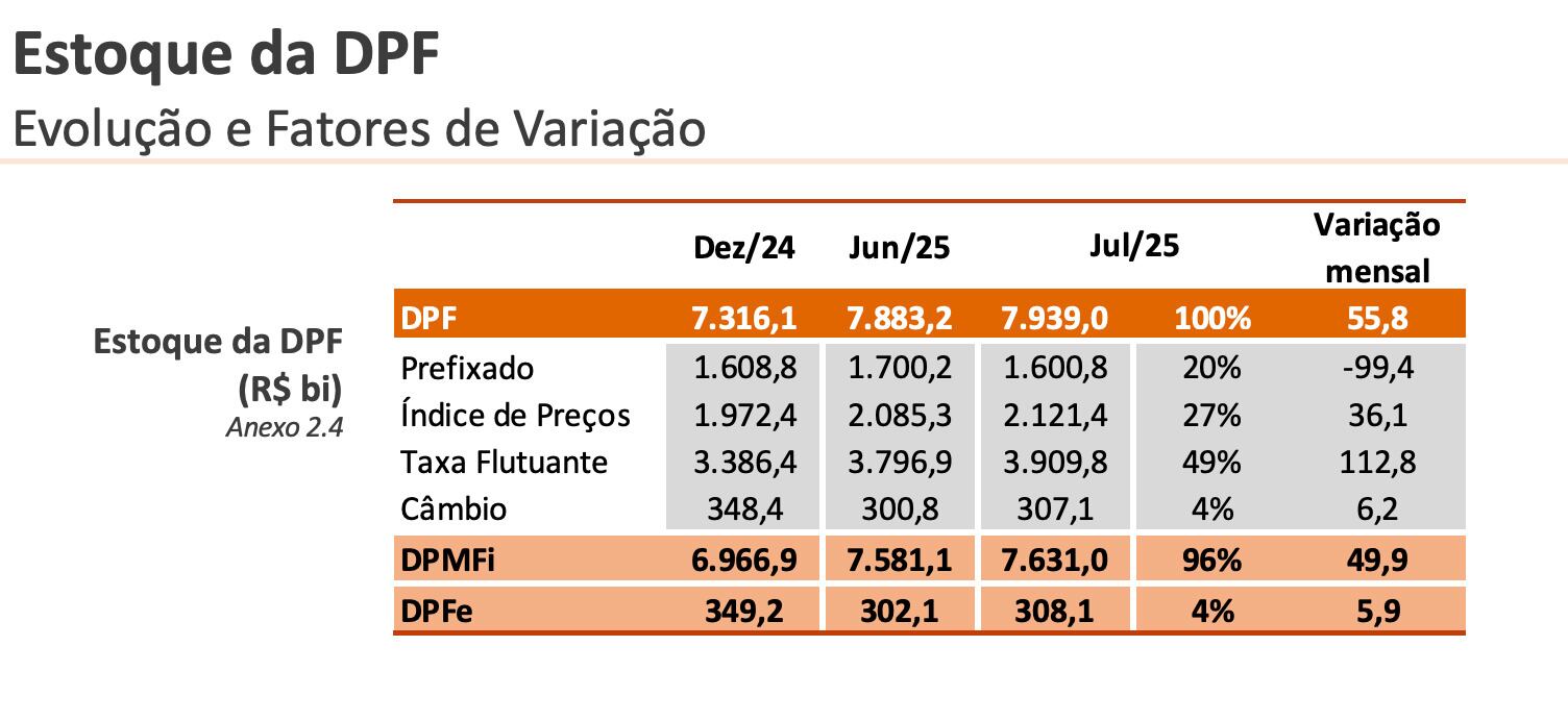 A dívida pública subiu 0,71% em julho em relação a junho de 2025. O valor atingiu R$ 7,94 trilhões, o que representou uma alta de...