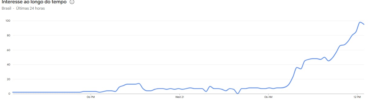 O levantamento feito pelo R7 com auxílio do Google Trends, ferramenta que monitora as principais buscas da plataforma, mostra que o pico foi registrado às 11h40 desta quarta (21). Confira: