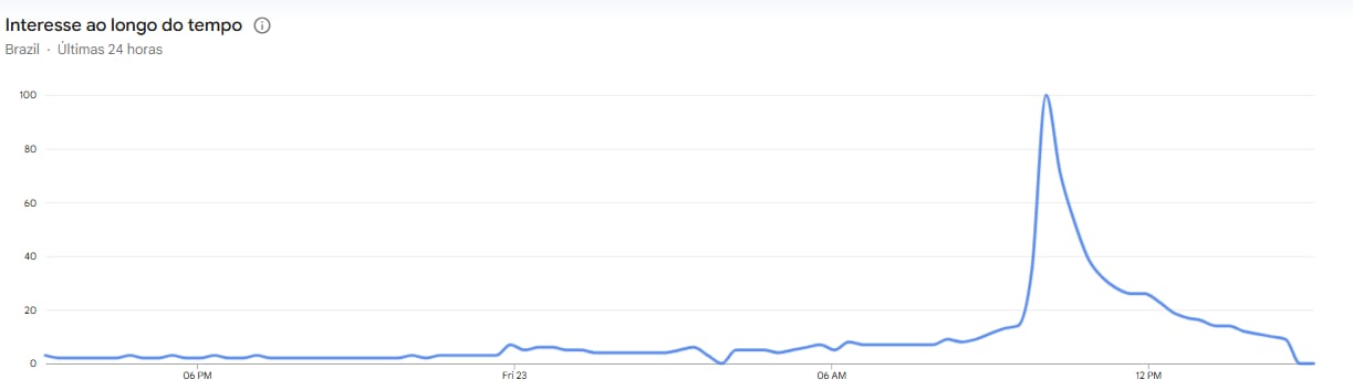 O levantamento feito pelo R7 com auxílio do Google Trends, ferramenta que monitora as principais buscas da plataforma, mostra que o pico foi registrado às 10h desta sexta (23). Confira: