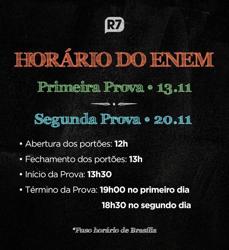 O Enem será aplicado nos dias 13 e 20 de novembro para mais de 3,3 milhões de estudantes em todo o país. No primeiro dia do exame, os participantes farão as provas de linguagens, ciências humanas e redação. No segundo, matemática e ciências da natureza.