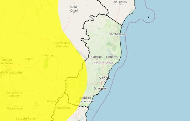 A falta de chuvas no Espírito Santo tem deixado a umidade relativa do ar abaixo do recomendado pelos órgãos de saúde como o ideal. Por conta disso, 27 cidades capixabas estão em alerta de potencial perigo, indicado na cor amarela.