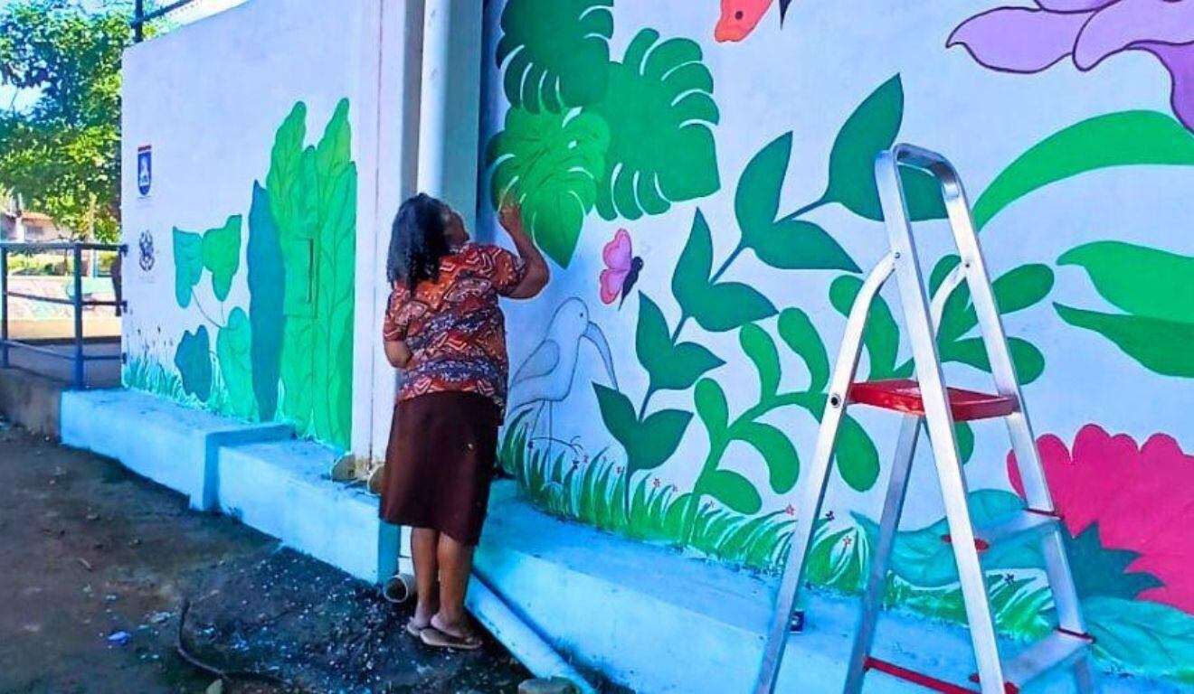 Foto: PMVV Espaços públicos do bairro Ilha das Flores, em Vila Velha, estão ganhando novos contornos com a iniciativa “Arte na Ilha”, projeto idealizado pela artista Maria da Conceição Athaydes Martins, de 66 anos.