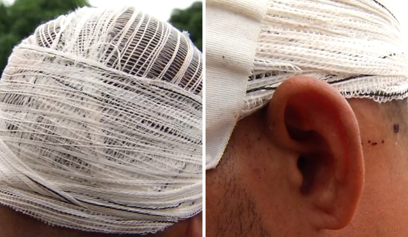 Homem ferido ao apartar briga. Foto: Reprodução/TV Vitória Um homem, de 36 anos, foi ferido com um golpe de facão na cabeça ao tentar separar uma briga entre dois amigos em um bar no bairro São Conrado, em Vila Velha. O agressor, identificado como Davi Gomes da Silva, fugiu para casa após o ataque, mas foi encontrado pela polícia e preso em flagrante por tentativa de homicídio.
