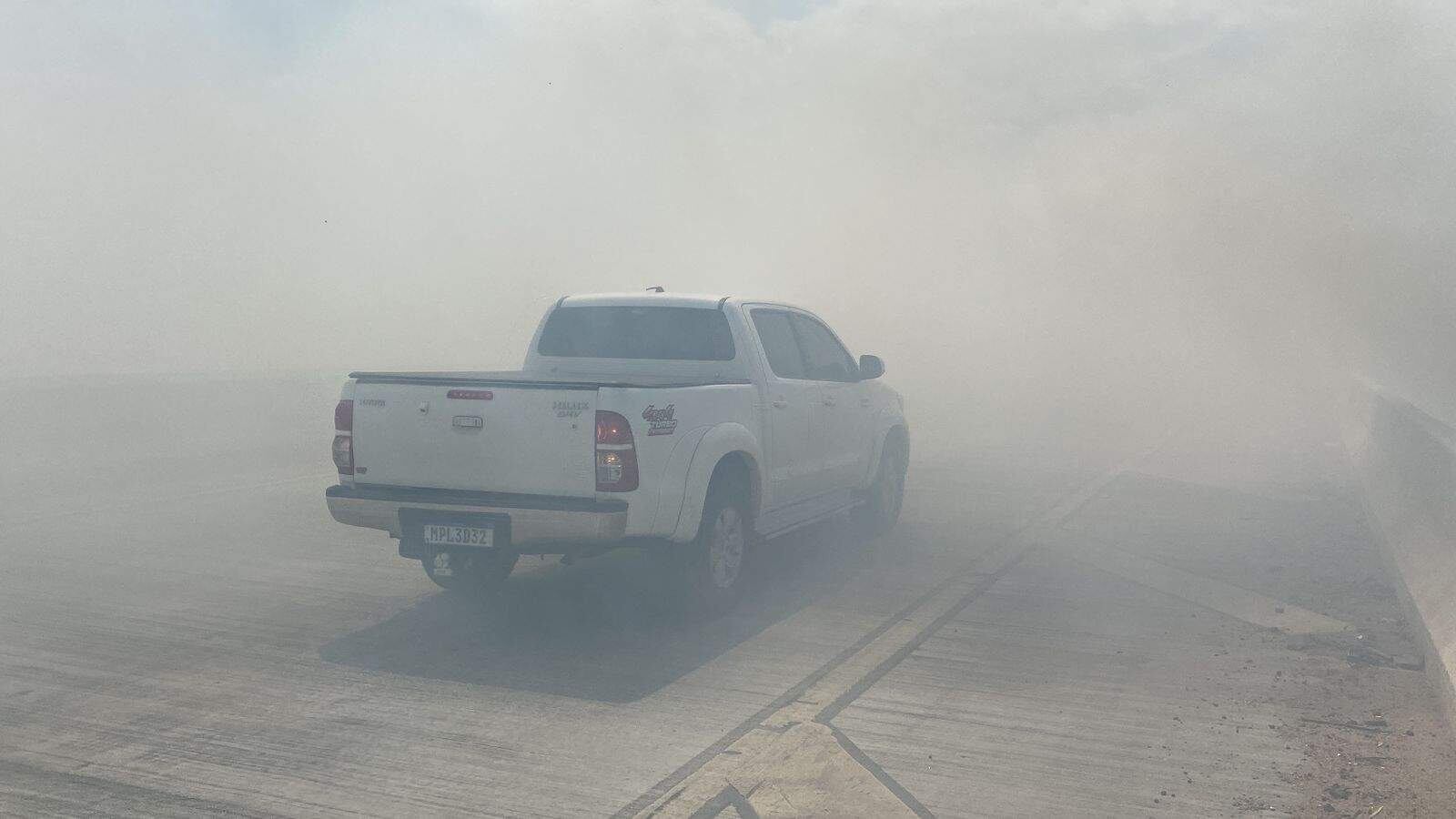 A intensa fumaça provocou baixa visibilidade na região, motoristas enfrentaram dificudade no trânsito. Segundo a PRF, sentido Norte...