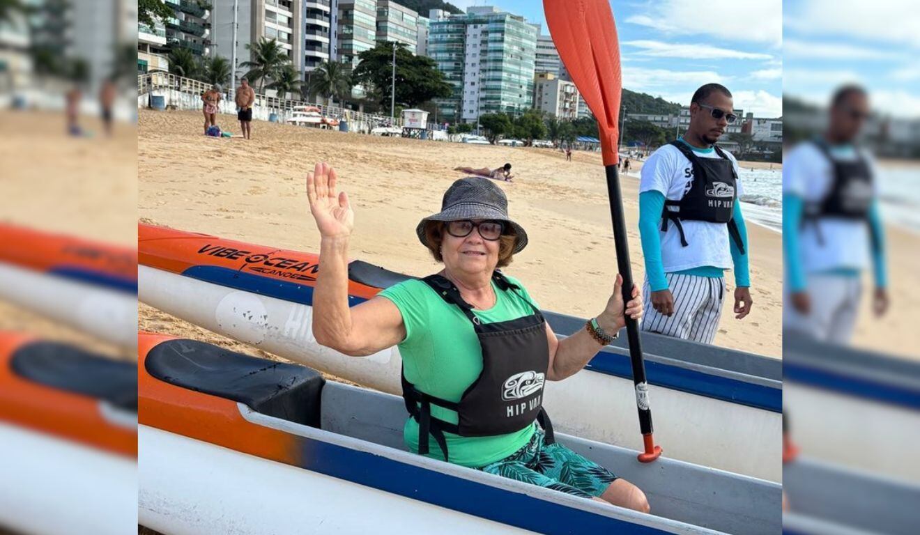 Idosas superam medos e fazem canoa havaiana em praia de Vila Velha