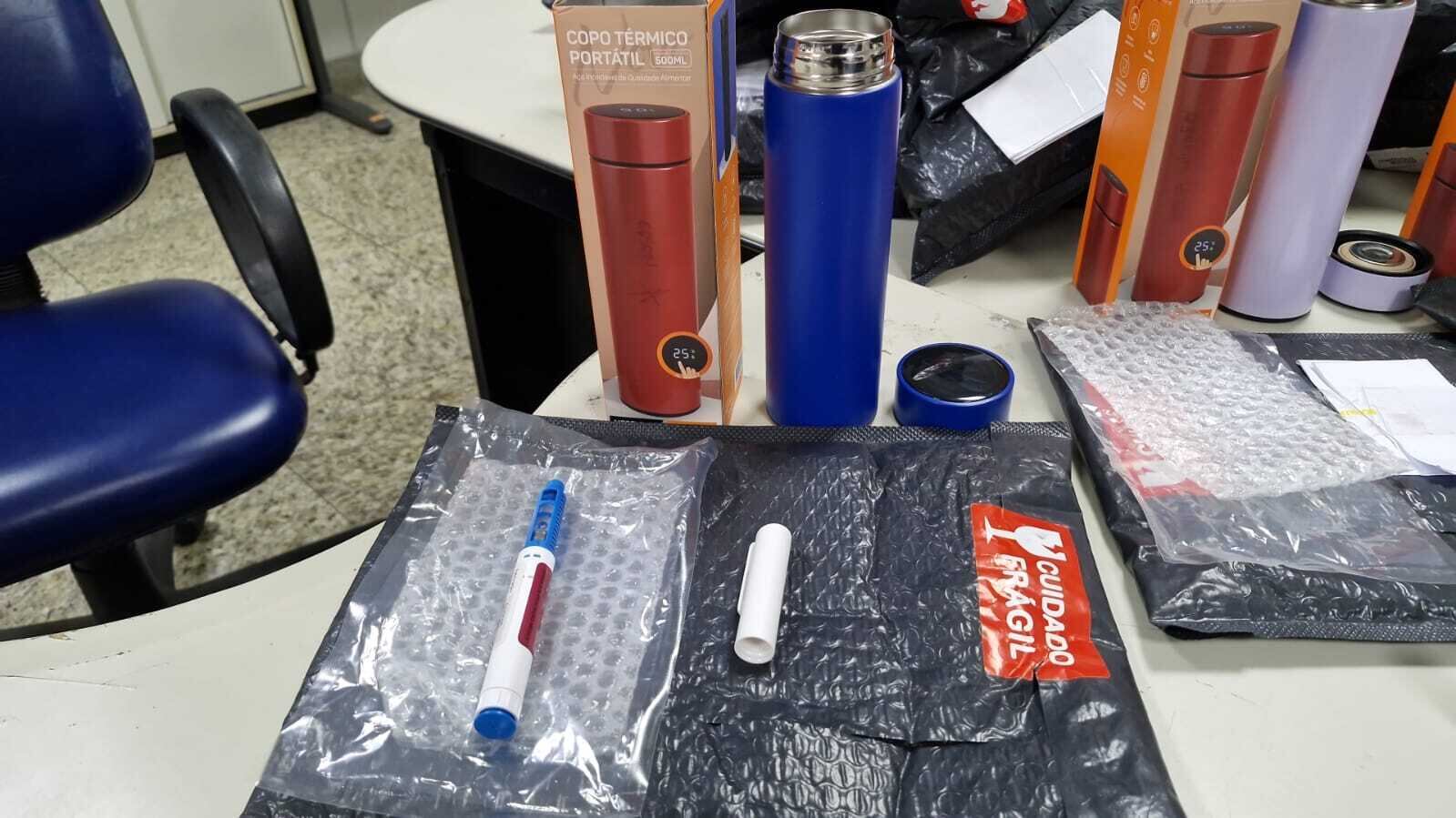 Mais de R$ 270 mil em Mounjaro são apreendidos escondidos em copos térmicos no ES