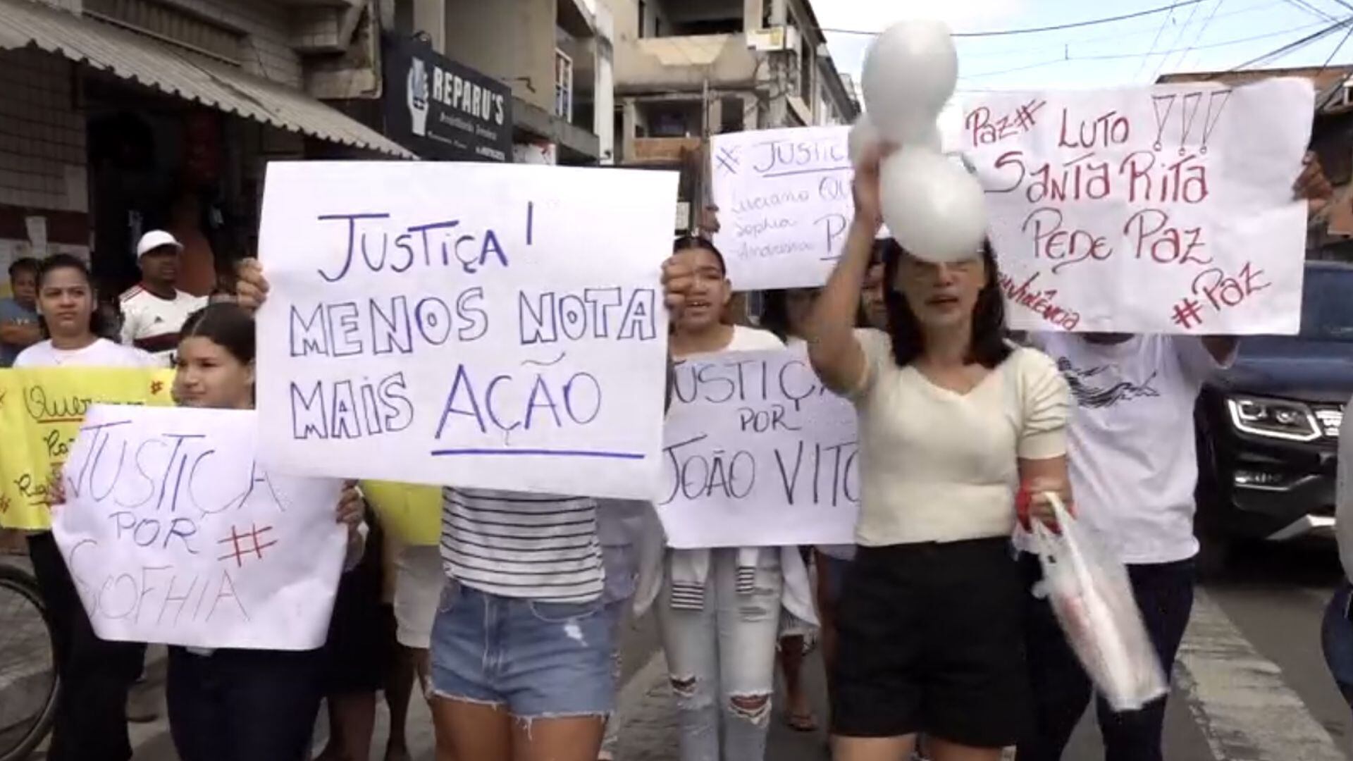 Protesto em Santa Rita. Foto: Reprodução TV VitóriaFamília e comunidade pedem justiça e mais segurança após mortes pela guerra do tráfico...