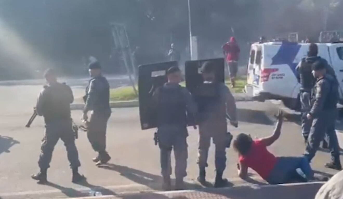 Manifestantes e policiais militares entram em confronto durante protesto na Serra