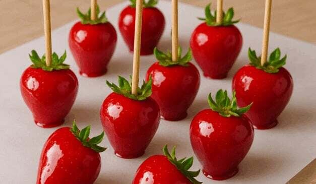 Morango do amor: Foto: ChatGPT Estamos vivendo a época do “morango do amor”, uma iguaria composta por um morango fresco envolto por uma crosta dura de açúcar caramelizado. Ele conquista pelo sabor doce, pela aparência brilhante e pelo apelo afetivo que remete à infância e às celebrações típicas.
