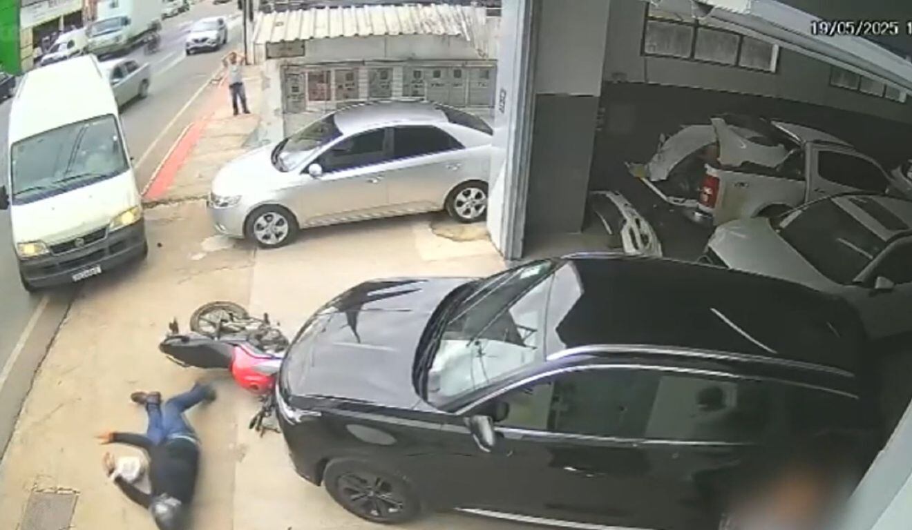 Motociclista ficou no chão após acidente e condutor da van prestou socorro. Foto: Reprodução/ TV Vitória