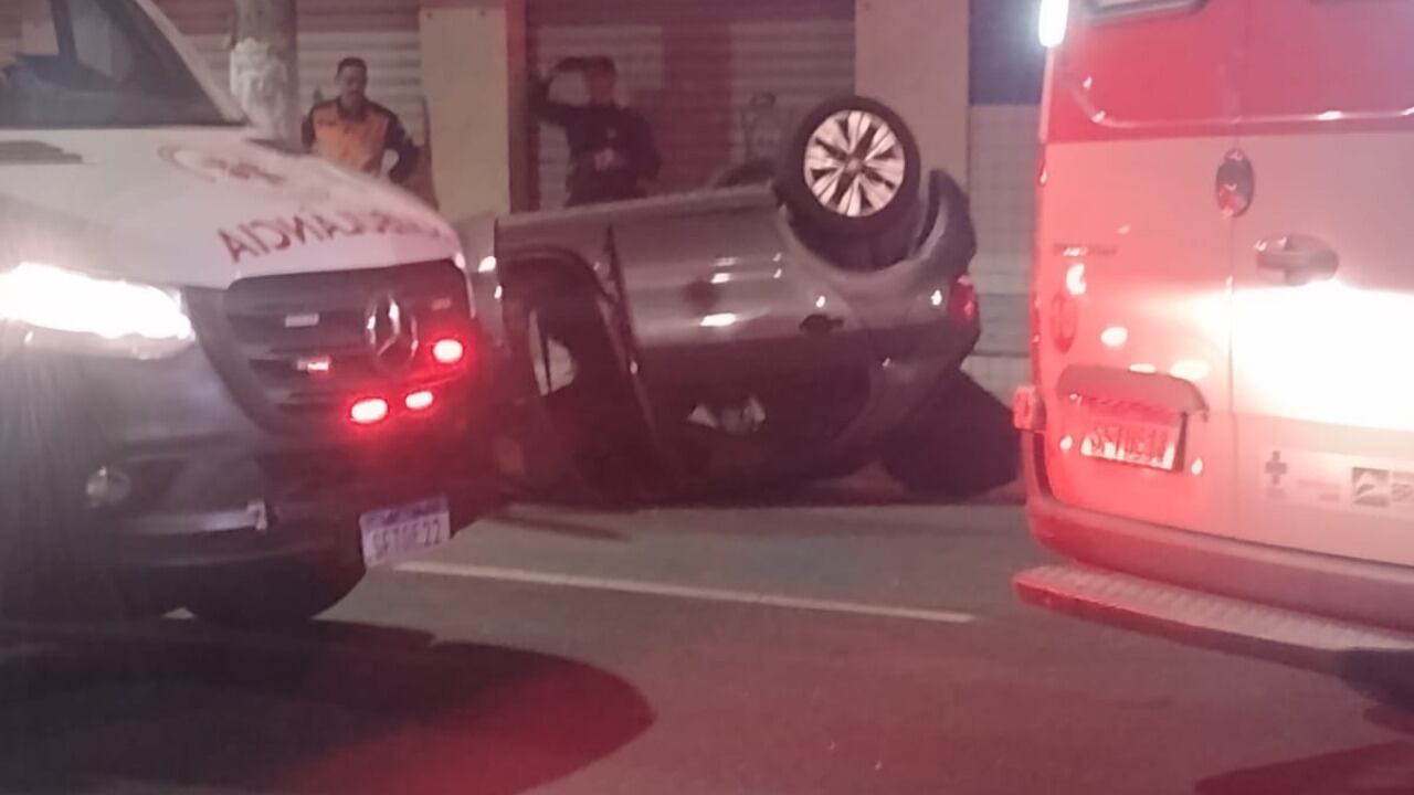 Foto: Reprodução/ WhatsApp TV Vitória Um carro capotou na madrugada deste sábado (10) na região da Vila Rubim, em Vitória. O motorista que estava no veículo foi socorrido em estado grave.