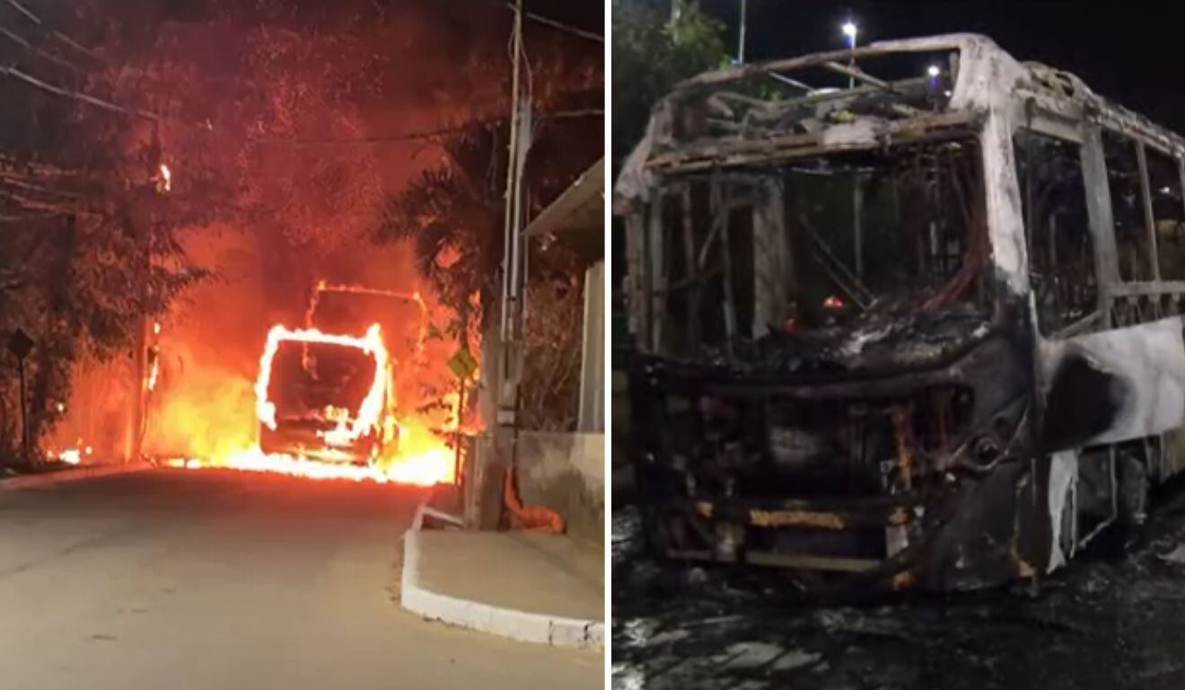 Ônibus incendiados em Cariacica e na Serra (Foto: Reprodução vídeo e TV Vitória) Ônibus incendiado no Bairro da Penha (Foto: Leitor Folha Vitória)