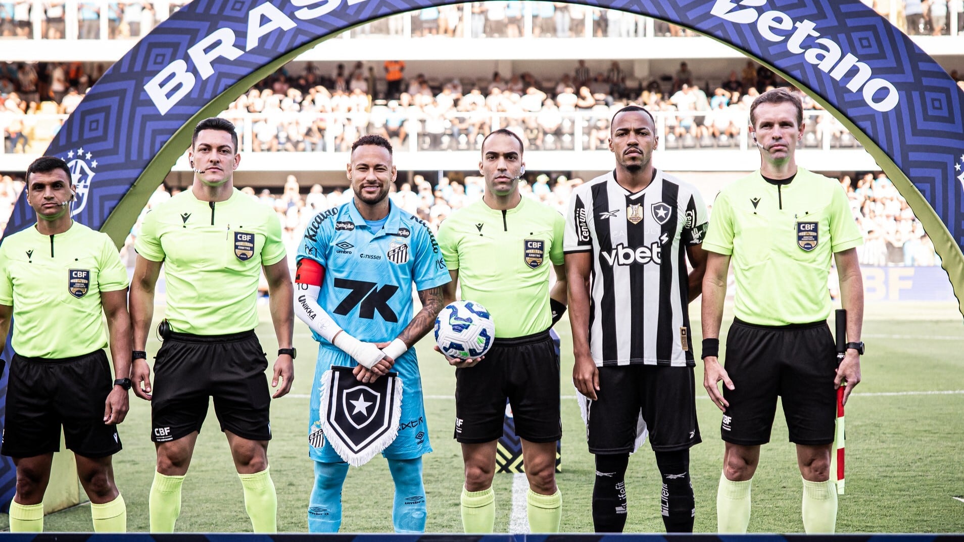 Neymar ao lado do árbitro Davi de Oliveira Lacerda (segurando a bola) antes do jogo (Foto: Raul Baretta/Santos FC) A possível última partida de Neymar com a camisa do Santos ficou marcada pela expulsão do craque aos 30 minutos do segundo tempo, por fazer um gol com a mão. O lance aconteceu na derrota do Santos para o Botafogo por 1 a 0, na tarde de domingo (1º), na Vila Belmiro, pela 11ª rodada do Brasileirão.